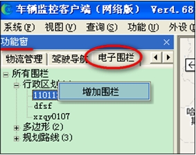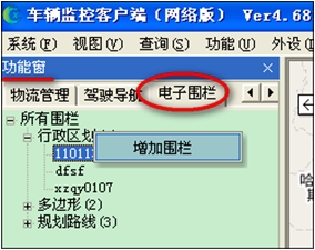 点击“确定”后,左侧“功能窗”即显示刚刚添加的电子围栏。
