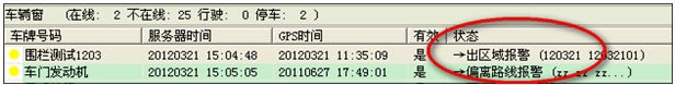 a.通过“客户端--车辆窗--状态栏” 查看即时报警信息,如图14