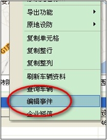 a.打开车辆窗 右键点击需要设置触发短信报警的车辆,选择“编辑事件”,如图16