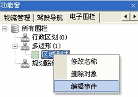 登录客户端,打开“功能窗—电子围栏”,右键点击围栏名称,选择“编辑事件”,如图20