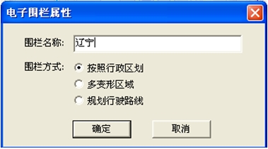 右键点击“所有围栏”,选中 ,弹出“电子围栏属性”对话框,填写围栏名称,选择围栏方式---按照行政区划,如图3: