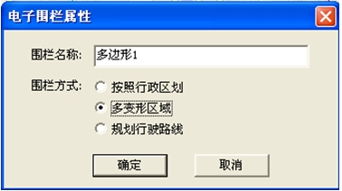 右键点击“所有围栏”,选中 ,弹出“电子围栏属性”对话框,填写围栏名称,选择围栏方式---多边形区域,如图7: