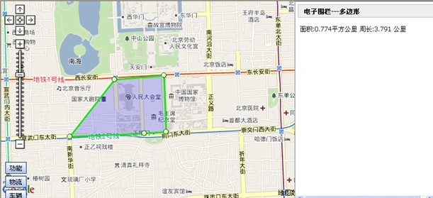 (2)多边形区域围栏,自由定义区域,可设置驶入、驶出报警;