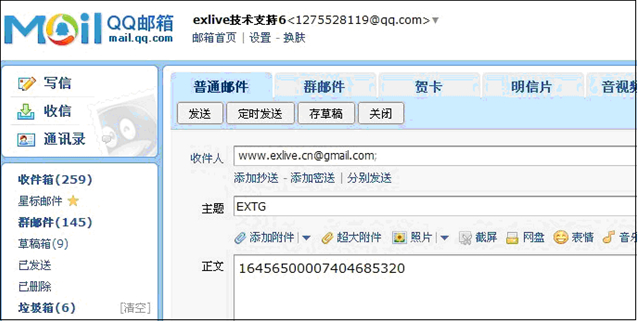 正文:将未激活的设备序列号拷贝到邮箱的正文中。如下图: